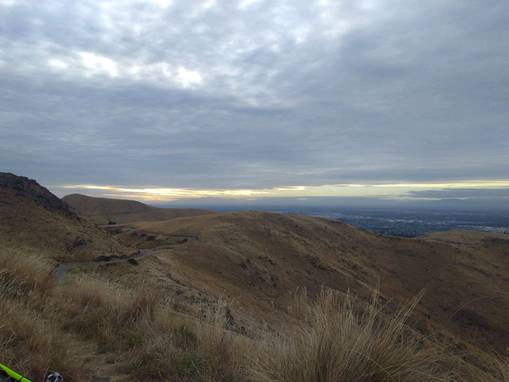 Met at Nelson's after work and we headed up from his, taking the first cul-de-sac and up the steep bastard steppy alleyway to Huntsbury Ave and on up from there. Hot and tiresome work up here, into the gravel and on up, me getting a fucking sore back and having to stop several times to stretch it out. Nasty. Up onto the singletrack, through to the landing strip then up towards the gravel. At the bottom of this, Nelson did the new jump (which he skipped when I did it cos he was on his XCmachine).
