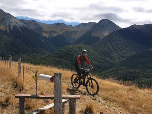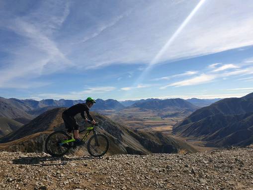 (Nelsie riding the wrong way!!! overlooking the Castle Hill Basin)