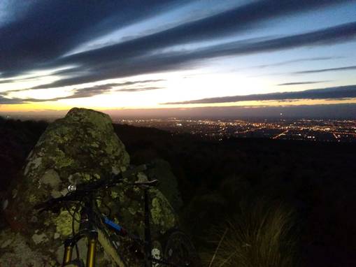 Sweet ride today with Nelson and Pete. 8.30 or so pick-up from mine... Jetted up and parked at the usual 'Lake' Janet, and got toodling up the road for a start. Pete's first blood appeared when his leg caught the warratah at the gate. Turned off into the singletrack, stopping to clear some branches, then hitting the steeeeeeeeeeeep. Gasping, no asthma remedy so gasping all the way. Pete had a tumble getting going on one of the stretches, heels over head below the track, blooding his leg good for the second time. Got to the lookout and some walkers turned up. Got riding again, up the singletrack, best way to the top. Up, pretty much in the clouds by this point